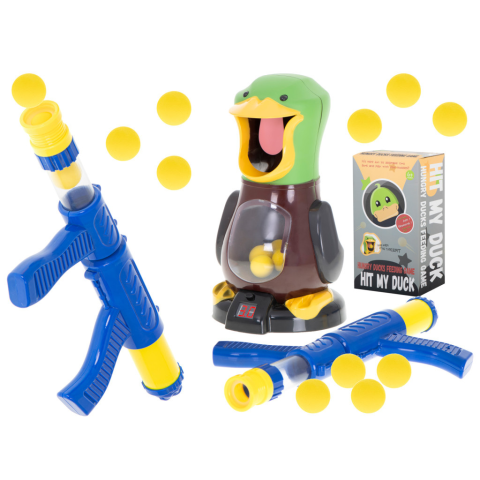 Fantasztikus arcade játék - célba lövés. Ideális a légpuskák szerelmeseinek. Tartalmazza: kacsa, sörétes pisztoly, 10 töltény. Tápegység: 2x AA 1,5 V (nem tartozék). A kacsa méretei: 17.5x32cm. Pisztoly méretei: 40x16cm