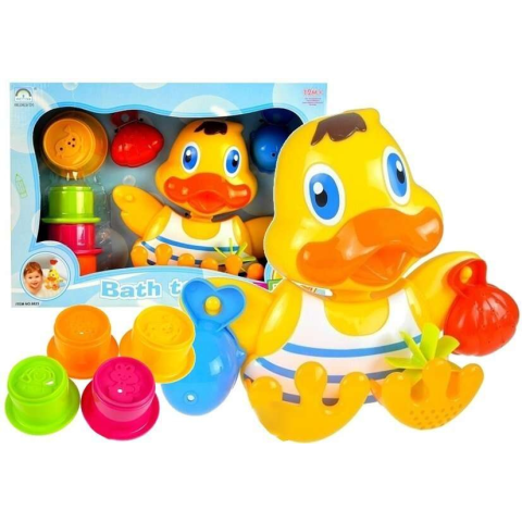 Kacsás Fürdőjáték Készlet Poharakkal A gyerekek imádnak játszani a vízzel, például fürdés közben. Egy vidám, bájos kacsa minden fürdést vagy medencében való játékot szórakoztatóbbá tesz gyermeked számára. A készlet kifejezetten azoknak a kisgyermekeknek készült, akik szeretnek pancsolni a vízben. Egy vidám kacsa csodálatos kalanddá teszi a fürdési időt. A játék, a vízen való lebegésen kívül, tapadókorongokkal van ellátva az alján, amelyeknek köszö