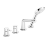 Karral a kád szélére kád csaptelep zuhanyszettel együtt. Króm kivitelben. A csaptelep térfogatárama 20,4 liter / perc.
