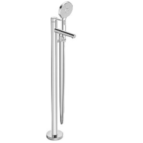 Karral padló kád csaptelep zuhanyszettel együtt. Króm kivitelben. A csaptelep térfogatárama 20,4 liter / perc. A kar 82,3 cm magasan van.