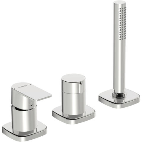 Karral a kád szélére kád csaptelep zuhanyszettel együtt. Króm kivitelben. A csaptelep térfogatárama 20,4 liter / perc.