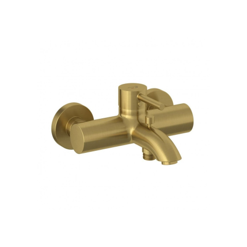 Karos fali kádcsaptelep zuhanykészlet nélkül, csiszolt arany színben. Az akkumulátor áramlási sebessége 22 liter/perc. Elem távolság 150 mm. Matt felülettel.