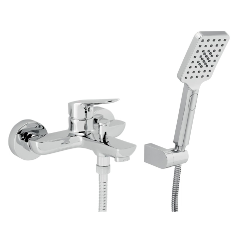Karos fali kádcsaptelep króm kivitelű kádkészlettel. Az akkumulátor áramlási sebessége 8 liter/perc. Elem távolság 150 mm. Fényes színű változatban.