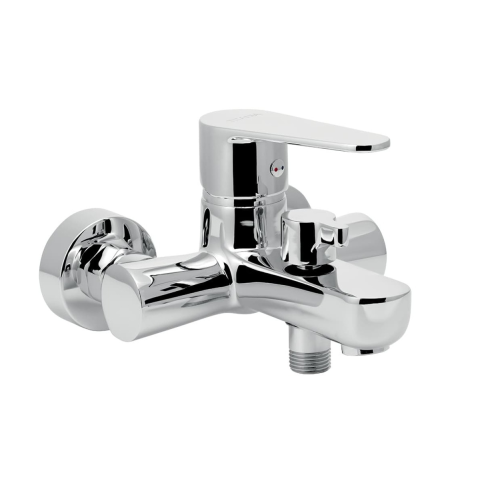 Karral fali kád csaptelep zuhanyszett nélkül. Króm kivitelben. A csaptelepek távolsága 100 mm.