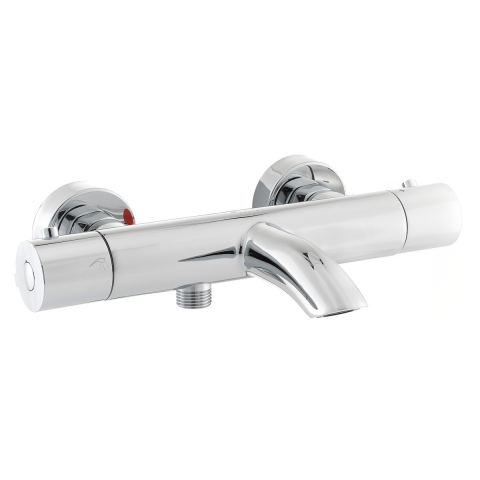 Termosztatikus fali kád csaptelep zuhanyszett nélkül. Kerekített kivitelben. Króm kivitelben. A csaptelep térfogatárama 20,43 liter / perc. A csaptelepek távolsága 150 mm.