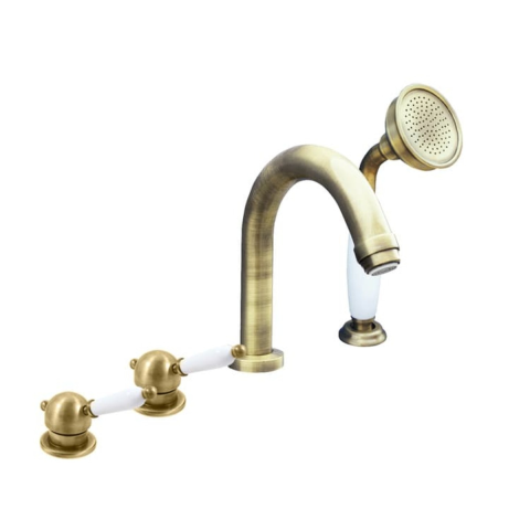 Karral állványos kád csaptelep zuhanyszettel együtt. régi sárgaréz színkivitelben.
