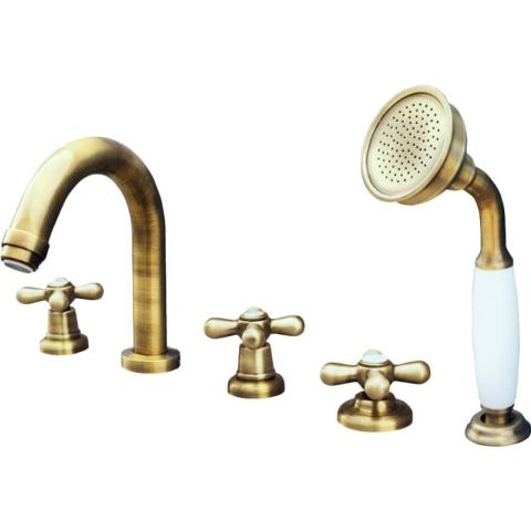 Csappal állványos kád csaptelep zuhanyszettel együtt. régi sárgaréz színkivitelben.
