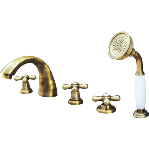 Csappal állványos kád csaptelep zuhanyszettel együtt. régi sárgaréz színkivitelben.