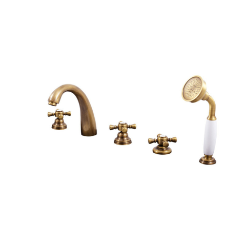 Csappal állványos kád csaptelep zuhanyszettel együtt. régi sárgaréz színkivitelben.
