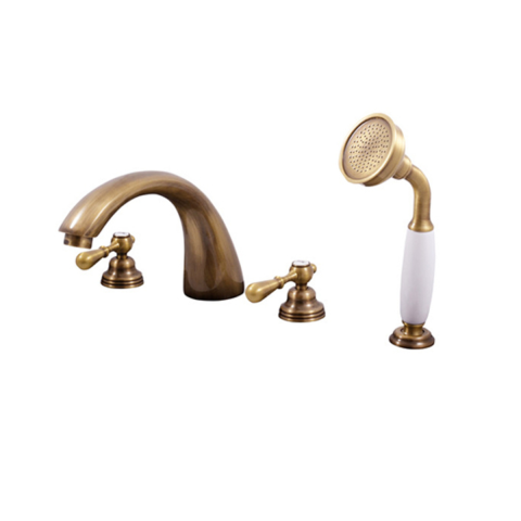 Csappal állványos kád csaptelep zuhanyszettel együtt. régi sárgaréz színkivitelben.