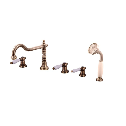 Csappal állványos kád csaptelep zuhanyszettel együtt. régi sárgaréz színkivitelben.