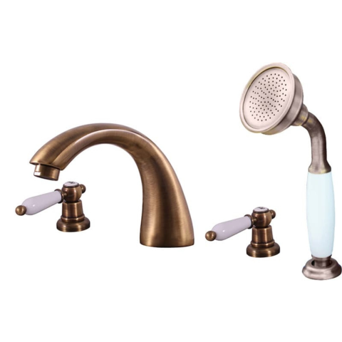 Csappal állványos kád csaptelep zuhanyszettel együtt. régi sárgaréz színkivitelben.