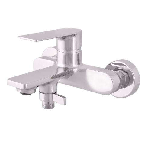 Karral fali kád csaptelep zuhanyszett nélkül króm színkivitelben. A csaptelepek távolsága 150 mm. Fényes.