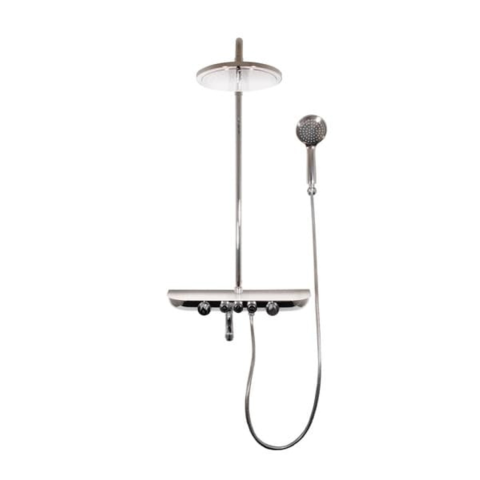 Karral fali kád csaptelep polccal. Fehér és króm kivitelben.