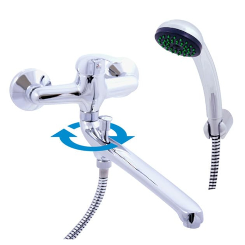 Karral fali kád csaptelep zuhanyszettel együtt. Króm kivitelben. A csaptelepek távolsága 100 mm.