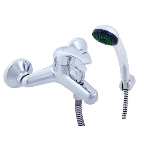 Karral fali kád csaptelep zuhanyszettel együtt. Króm kivitelben. A csaptelepek távolsága 150 mm.