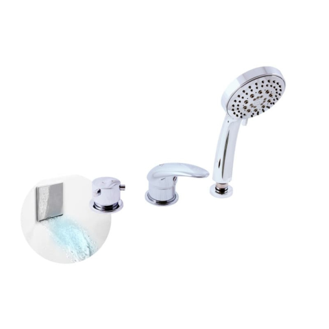 Karral állványos kád csaptelep zuhanyszettel együtt. Króm kivitelben.