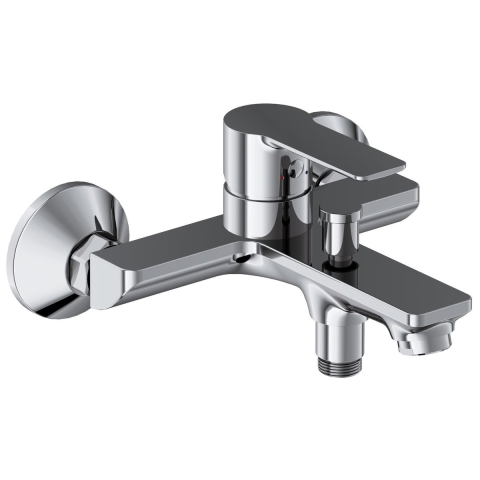 Karos fali kádkeverő zuhanykészlet nélkül, krómozott kivitelben. A keverő távolsága 150 mm. Fényes színben.
