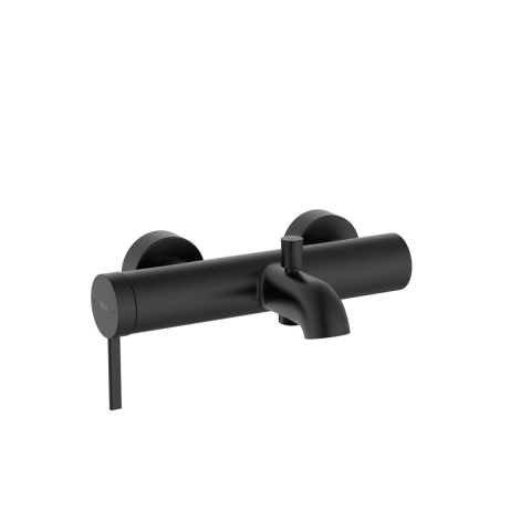 Karral fali kád csaptelep zuhanyszett nélkül fekete színkivitelben. A csaptelep térfogatárama 20 liter / perc. A csaptelepek távolsága 150 mm. Matt felülettel.