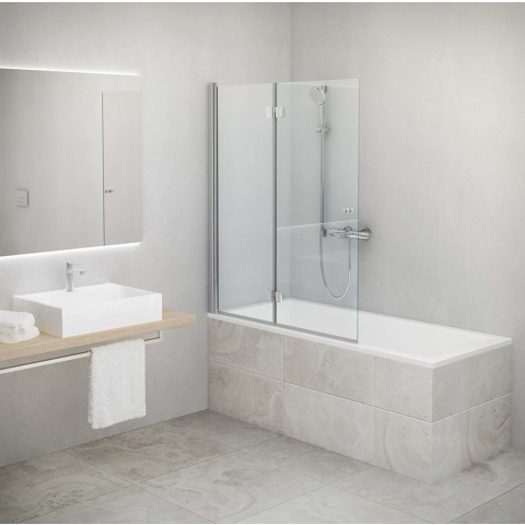 140x120 cm méretű kádparaván. Forgó nyitórendszer. Bal oldali elrendezés. Fényes króm profil. A paraván klasszikus kádakhoz készült.