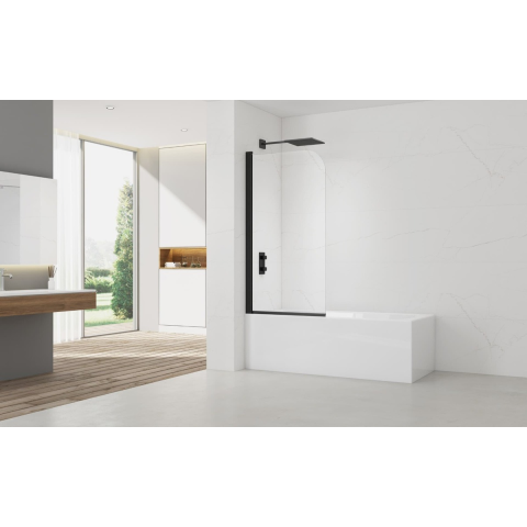 Kádparaván mérete 150x80 cm. Elforgatható nyitórendszer. Bal és jobb oldali tájolás is. Profil fekete matt színben , a felület átlátszó üvegből készült. A panel 1 darabból áll. A paraván a klasszikus kádakhoz használt.