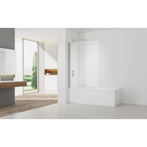 Kádparaván mérete 150x105 cm. Tolóajtó rendszer. Bal és jobb oldali tájolás is. Profil fényes krómban , a felület átlátszó üvegből készült. A panel 2 darabból áll. A paraván a klasszikus kádakhoz használt.