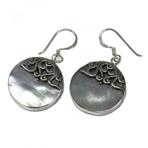 1 kép Kagyló és Ezüst Fülbevalók - Klasszikus Kerek - MOP