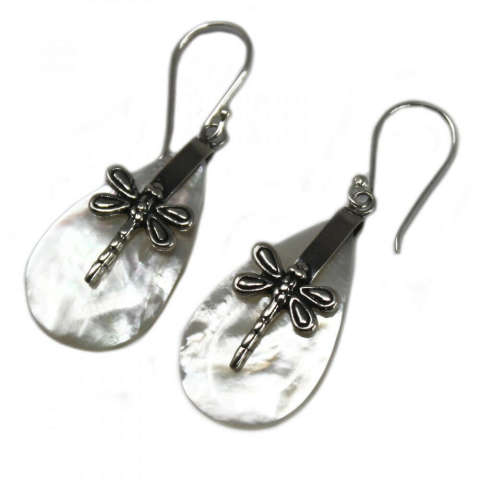 1 kép Kagyló és Ezüst Fülbevalók - Szitakötő - MOP