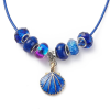 1 kép Kagyló medálos műbőr női nyaklánc kék üveg díszekkel, 45+4 cm