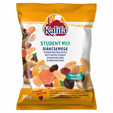 Örömteli egészség Tudta, hogy a Kalifa Diákcsemege négyféle aszalt gyümölcs és háromféle olajos mag gazdag keveréke? Kiváló magnéziumforrás, amely önmagában is fogyasztható, de tehetjük müzlibe, joghurtba, salátába is. A magnézium hozzájárul a fáradtság