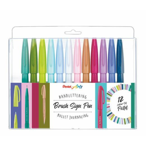 Kalligrafikus ecsetirón készlet, PENTEL "Brush Sign", 12 különböző pasztell szín