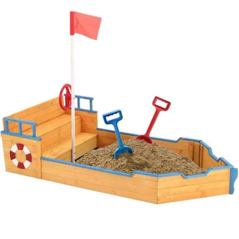 Kalózhajó formájú homokozó Éld át a kalózok világát a kertedben a különleges Kalózhajó formájú homokozóval! A valósághű kialakítás, a kormánykerék, a zászló és a hajótest minden gyermeket lenyűgöz. A 94x187 cm-es méret kényelmes játékteret biztosít, a f