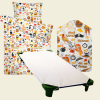 Csomagban kedvezőbb Ovis méretű mintás paplan-párna garnitúra 90*140 cm paplan 40*50 cm párna Vidám mintás fedő réteg: 35% pamut-65% PE Töltet: 100% rugalmas puha PE szál 40 fokon mosható TILOS vasalni ! Nem kell külön ágynemű