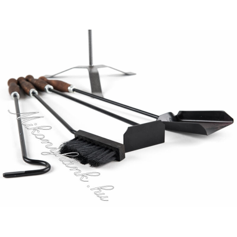 Anyaga: Festett fém, színterezett fém tartóállvány ,lakkozott fa nyél.