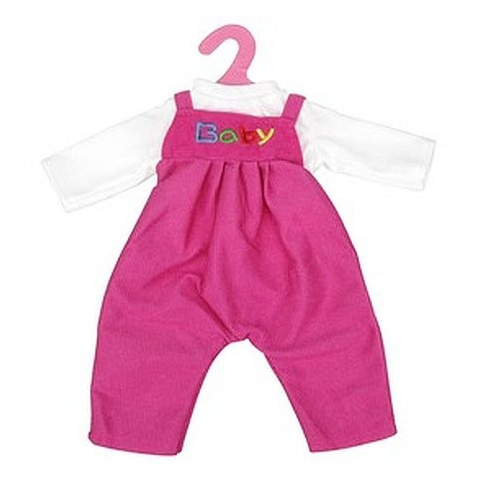 Kantáros nadrág és póló babaruha - 46 cm Öltöztesd a játékbabát kék kertésznadrágba, és fehér pólóba! A Kantáros nadrág és póló babaruha készlet egy kék színű, színes Baby felirattal díszített nadrágot, valamint egy hófehér hosszú ujjú pólót tartalmaz