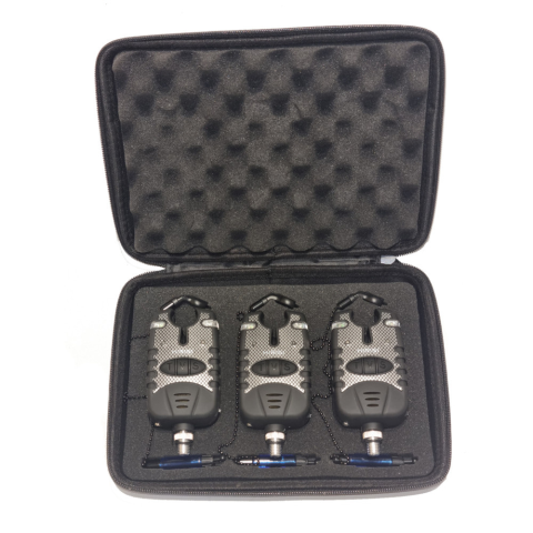 MŰSZAKI PARAMÉTEREK: Szett 3 + 3 tartalmazza: - 3x Kapásjelző - 3x láncos jelző - 1x Szállító koffer Tápellátás: 3db 9V elem (a csomag nem tartalmazza)