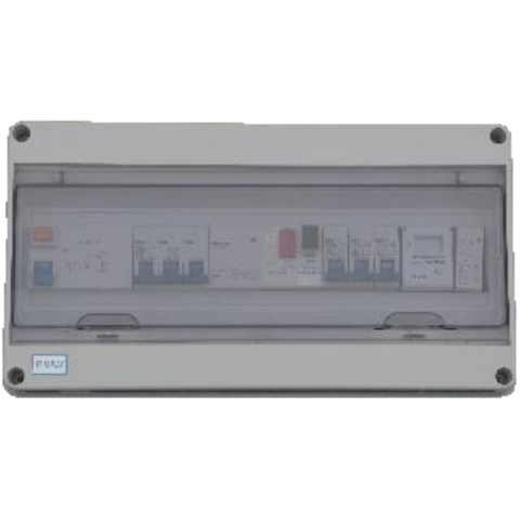 Kapcsolószekrény - F2VK - EHP - P2 Ez a kapcsolószekrény számos hasznos funkcióval rendelkezik, ideális elektromos vezérlési feladatokhoz: Áramvédő kapcsoló: 30 mA Maximális feszültség/áram: 230 V/10 A Szűrés vezérlés: Időkapcsolóval, legfeljebb 1,2
