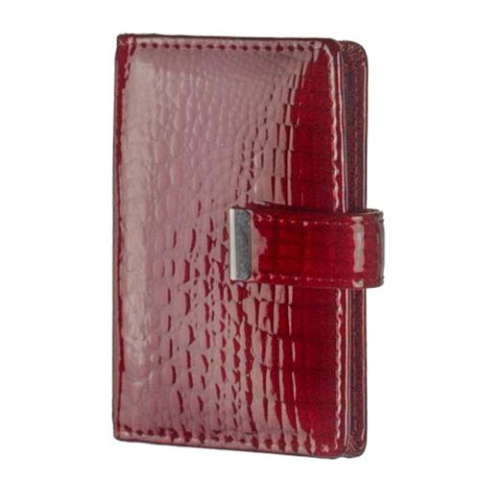 Állított, 20+2 rekeszes krokómintás sötétpiros lakkbőr kártyatartó külső kapoccsal