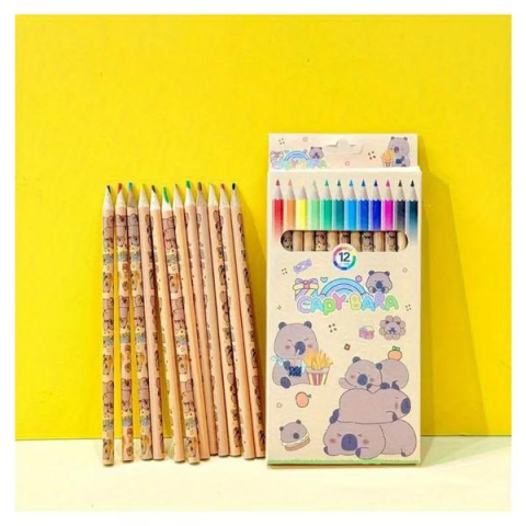 Kapibara Színes Ceruzakészlet – 12 db, 0.5 mm-es heggyel JP3468506Vidám és aranyos dizájnjával ez a 12 darabos Kapibara színes ceruzakészlet tökéletes választás rajzoláshoz, színezéshez és kreatív íráshoz. A természetes fa test és a cuki kapibara minta különösen népszerűvé teszi gyermekek körében, de ideális irodai jegyzeteléshez vagy művészi projektekhez is.Főbb jellemzők:12 különböző szín: Élénk és telt árnyalatok, melyek kiváló fedést biztosít