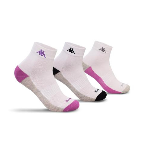 Kappa zokni (3 páras/ 3 színű csomag) Megnevezés: 3 pár vékony sportzokni Szár: rövid (alacsony, sport fazon) Színek: 1 pár fehér zokni lila sarokkal és orral valamint szürke talppal, 1 pár fehér zokni fekete sarokkal és orral valamint
