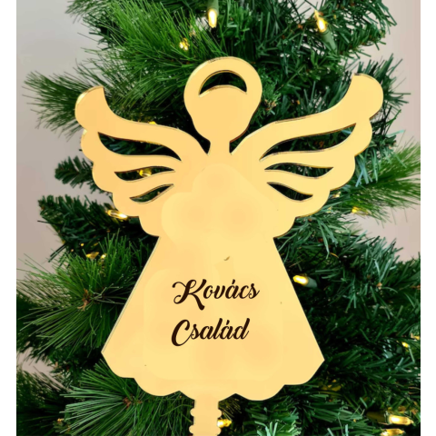 Tegye különlegessé karácsonyfáját az angyalkás, megszemélyesíthető csúcsdísszel! Természetes fából készült, lézervágott mintával és egyedi gravírozási lehetőséggel. Ez a dísz ötvözi az angyali eleganciát a személyes érintéssel, így az ünnepi dekoráció kie
