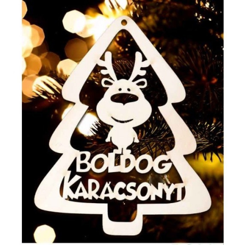 1 kép Karácsonyfa dísz, Boldog karácsonyt, fenyőfa és rénszarvas