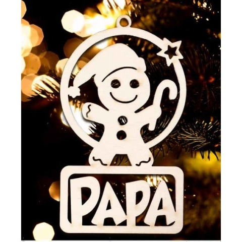 Karácsonyfa dísz, Papa Anyaga: fa Mérete: 13 x 7,5 cm