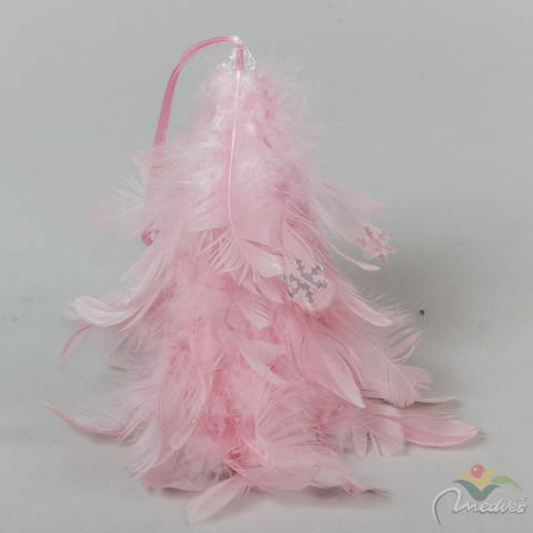 Karácsonyfa tollakkal akasztós rózsaszín 15cm