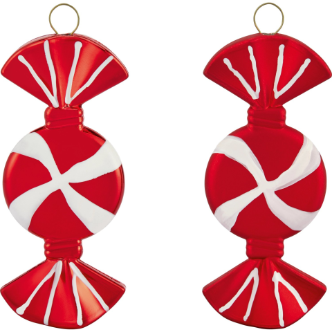 A piros-fehér színű, bonbon alakú karácsonyfadísz-készlet a karácsonyfa ünnepi díszítésére, virágdíszek díszítésére vagy egy adventi koszorú részeként használható. 4 piros-fehér színű szaloncukorból áll, amelyek matt felületűek. Minden szaloncukor műanyagból készült, ami könnyűvé és tartóssá teszi őket. Így a díszek minden évben újra felhasználhatók. A dekor-figurák mérete 9,5 cm, szélességük pedig 3,9 cm.