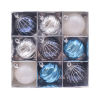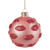 Egyik fele piros karácsonyidísz csillogó díszítéssel, másik fel