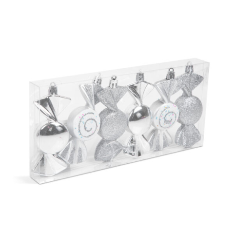 1 kép Karácsonyfadísz szett – ezüst cukor – 6 db / szett – 58782B