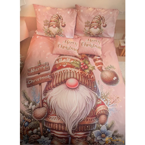 1 kép Karácsonyi 3 részes ágyneműhuzat 3D - Orchidea színű manó ajándékkal