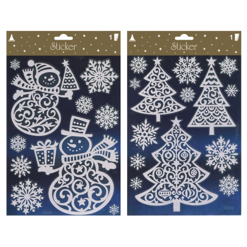 A télies, karácsonyi ablakképek 2 különböző motívumkészletben kaphatók. Az ablakdíszek fehér színűek, díszítéssel vannak ellátva, méretük pedig 29 cm x 41 cm. Ablakokhoz és más sima felületekhez ideálisak. Semmi másra nincs szükség, mivel ezek a képek statikusan öntapadóak. Az ablakképeket maradéktalanul eltávolíthatja és újra felhasználhatja. Ezek a lehúzható üvegképek, amelyek gyönyörű, hókristályokkal és jégkristályokkal körülvett hóembereke
