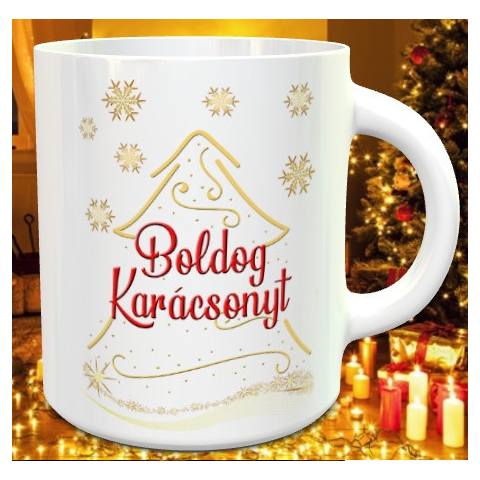 Karácsonyi ajándék, boldog karácsonyt bögre. Kívánj vele boldog karácsonyt családtagjaidnak, barátaidnak a szeretet ünnepén. Mosogatógépben is tisztítható, tartós minta. Válaszd ki a bögre színét és ne felejts el hozzá díszdobozt rendelni. Egyedi nyomt